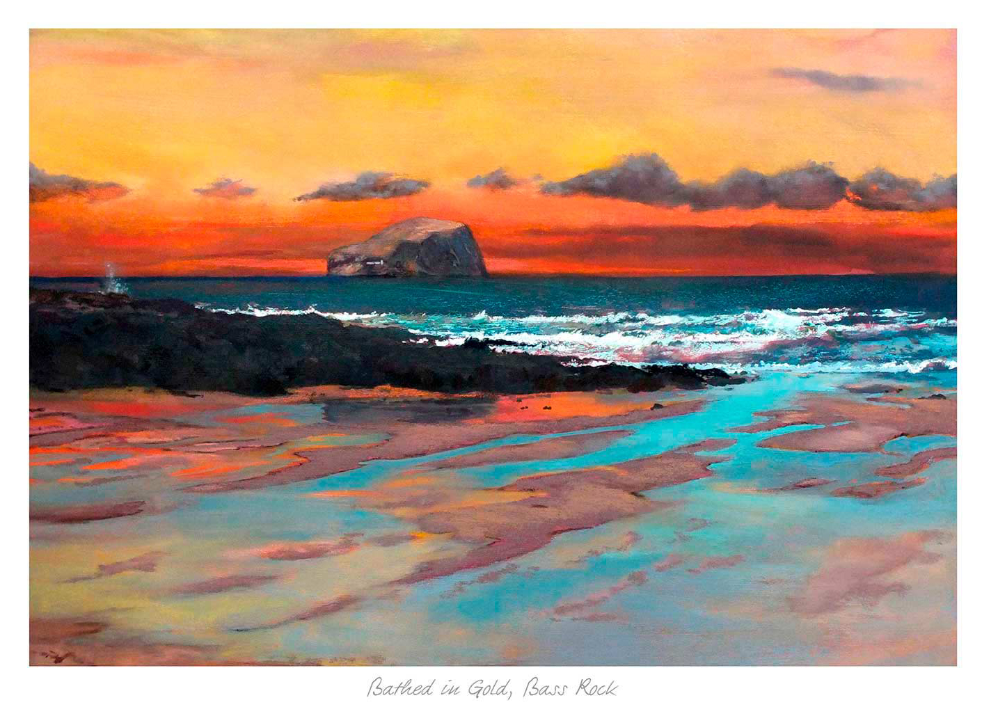 Bathed in Gold Bass Rock Framed Fine Art Giclée Print by Margaret Evans.