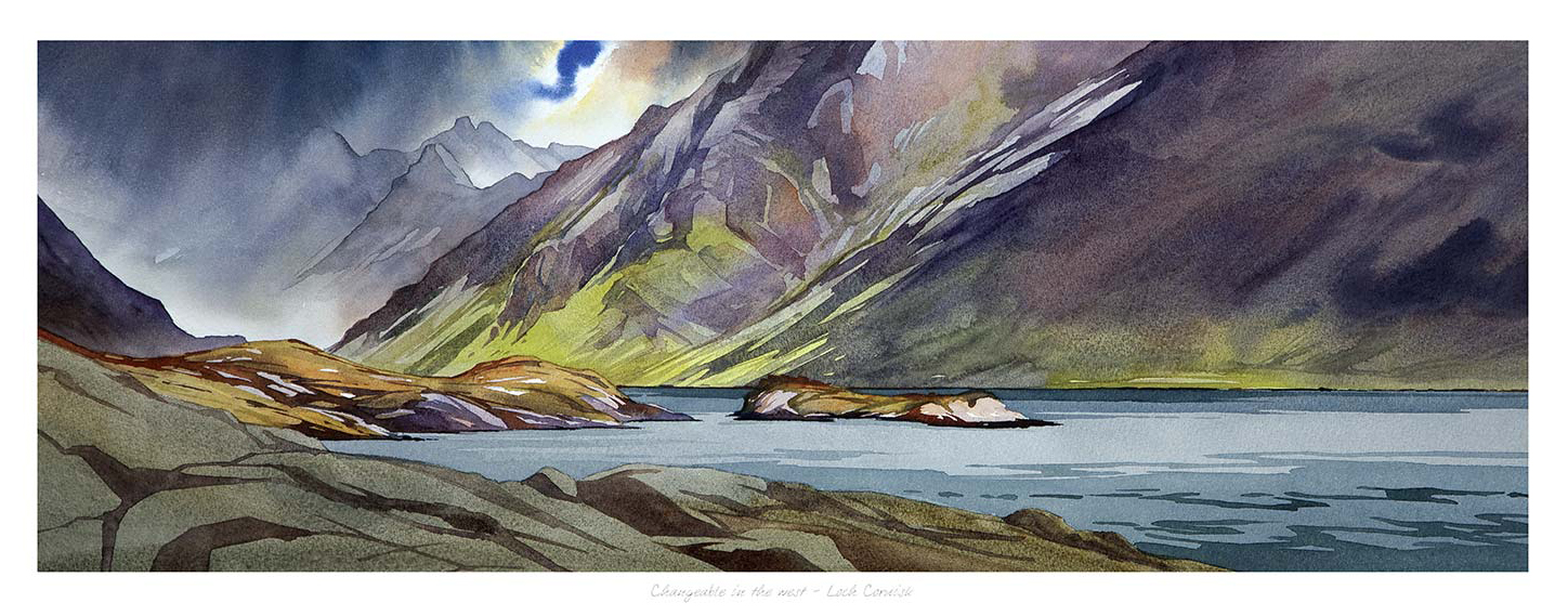 Changeable in the west, Loch Coruisk Framed Limited edition Fine Art Giclée Print by Peter McDermott.