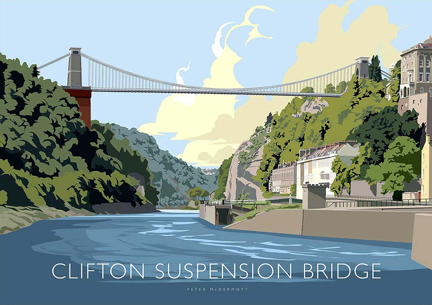 Clifton Suspension Bridge (Blue) Framed Fine Art Giclée Print by Peter McDermott.