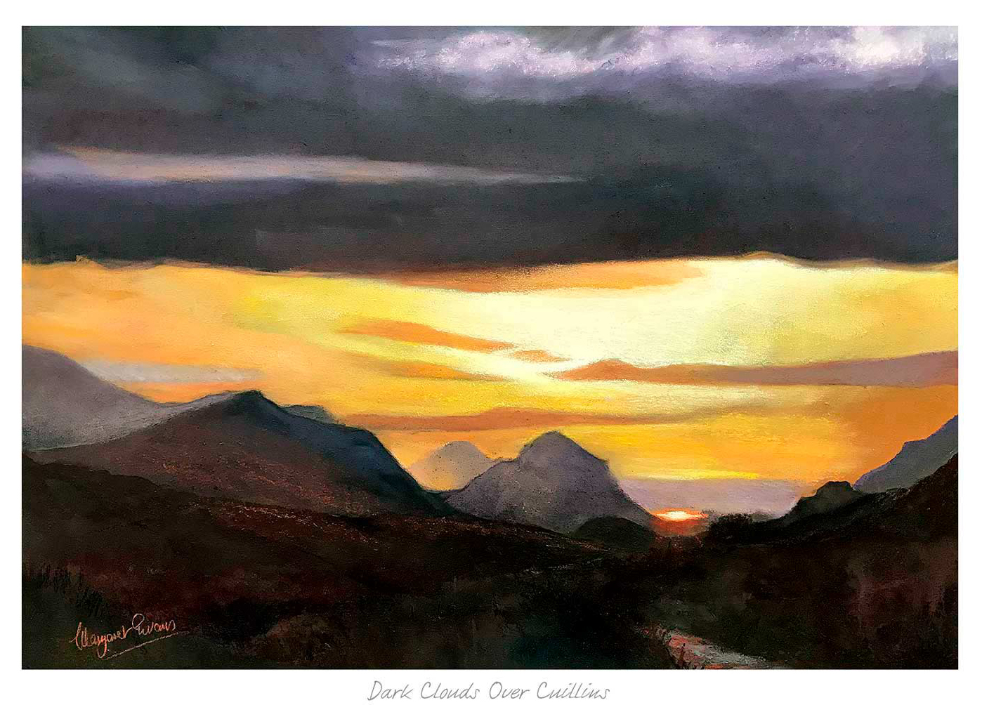 Dark Clouds Over Cuillins Framed Fine Art Giclée Print by Margaret Evans.
