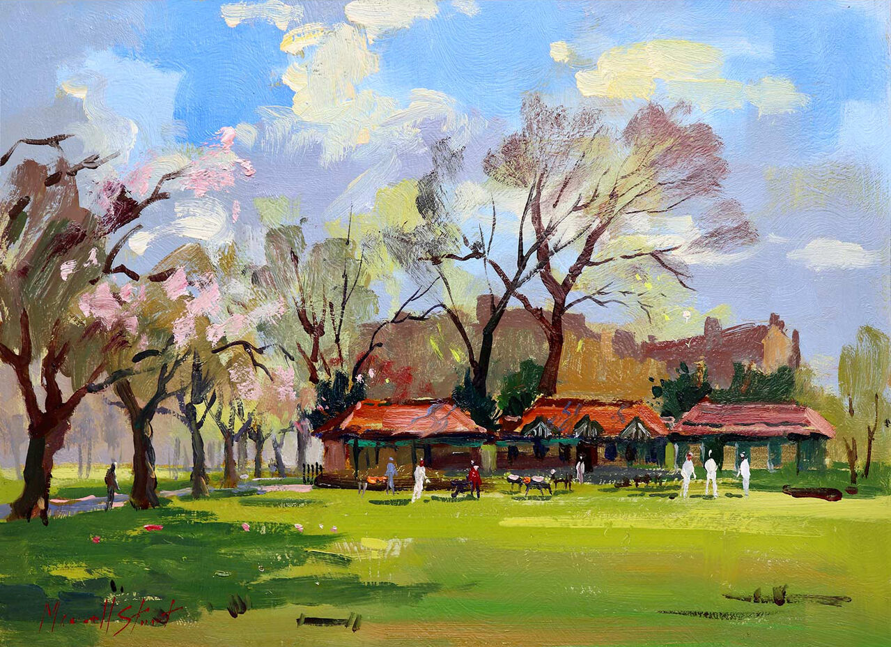 Getting Ready for Cricket, the Meadows, Edinburgh Framed Fine Art Giclée Print by Joseph Maxwell Stuart.