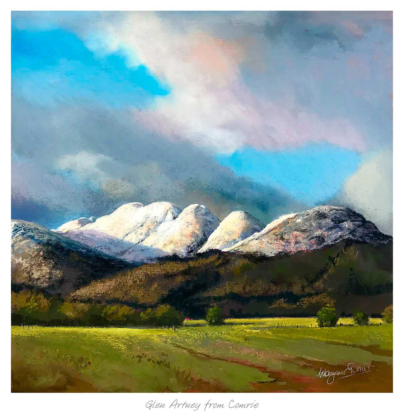 Margaret Evans is a Scottish contemporary artist & an internationally respected tutor & author of numerous teaching art books & DVD’s. She now paints full time in her studio in Highland Perthshire, an area of outstanding beauty in Scotland. Situated approximately 40 miles north of Edinburgh & Glasgow, the area offers plenty of inspirational subject featured in Margaret’s work, such as dramatic skies, seasonal woodland spots, Loch Earn & Grampian Mountains nearby.
