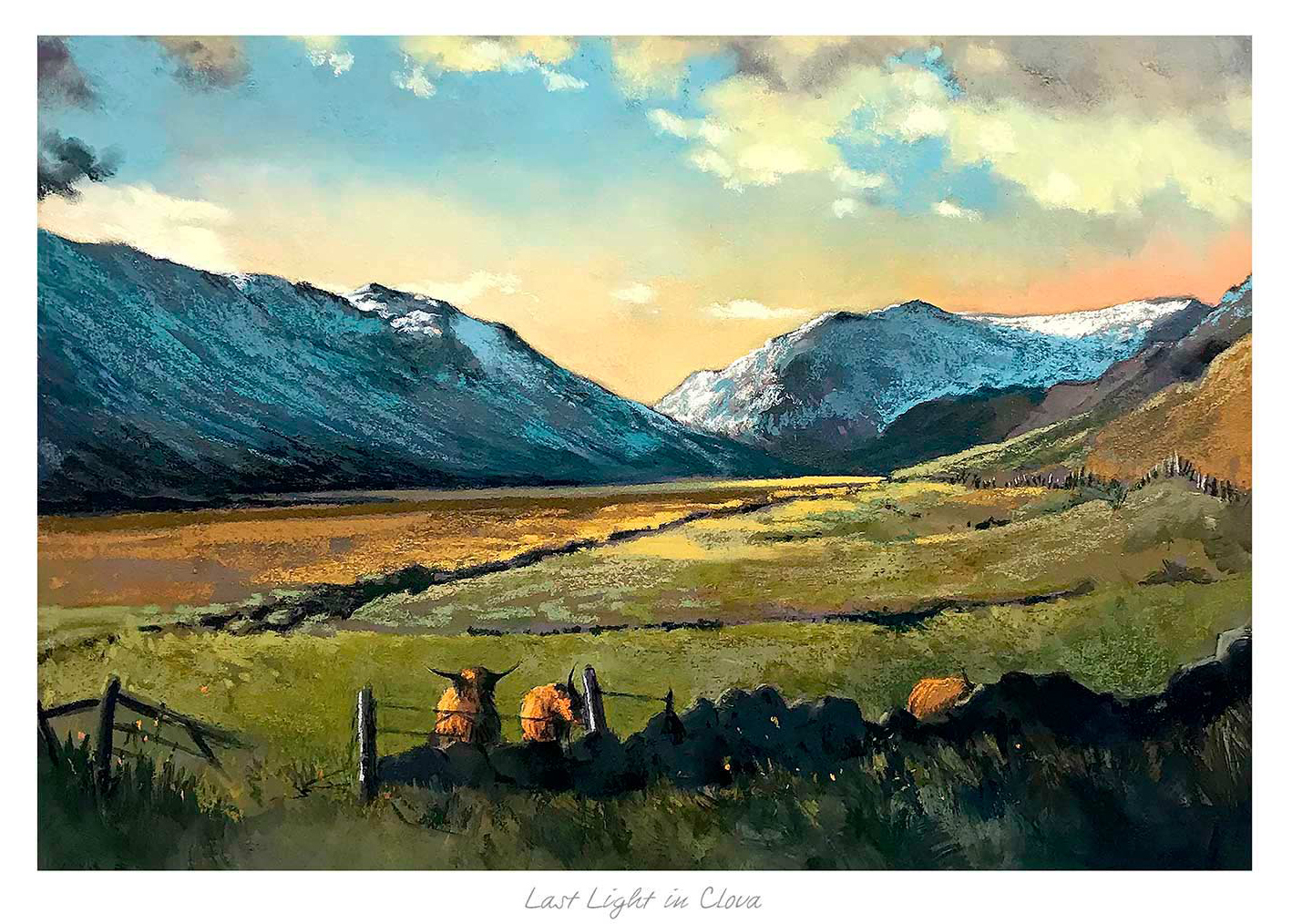 Last Light in Clova Framed Fine Art Giclée Print by Margaret Evans.