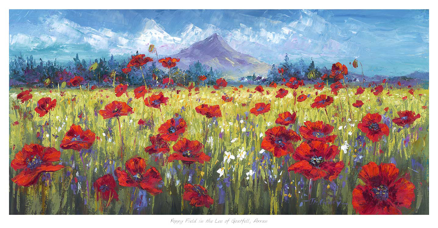 Poppy Field in the Lee of Goatfell,Arran Framed Fine Art Giclée Print by Jean Feeney