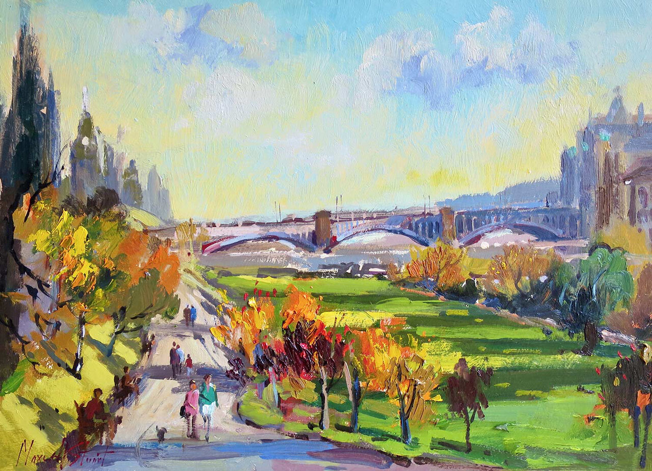 Joseph Maxwell Stewart was born in 1956. He studied drawing at the Ruskin School in Oxford then studied Fine Art at Edinburgh College of Art. Now based in the Borders, Joe finds an endless source of inspiration from the landscape in which he lives. Venice too has a natural attraction for him and with its lively colours and constant bustle provides a welcome contrast to Scotland. Joe paints in both oils and watercolours mostly ‘en plein air’ where he delights in the challenge of working ​directly from nature.