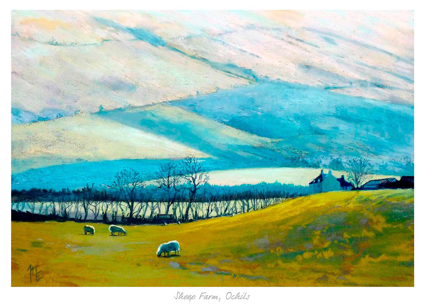 Sheep Farm Ochils Framed Fine Art Giclée Print by Margaret Evans.