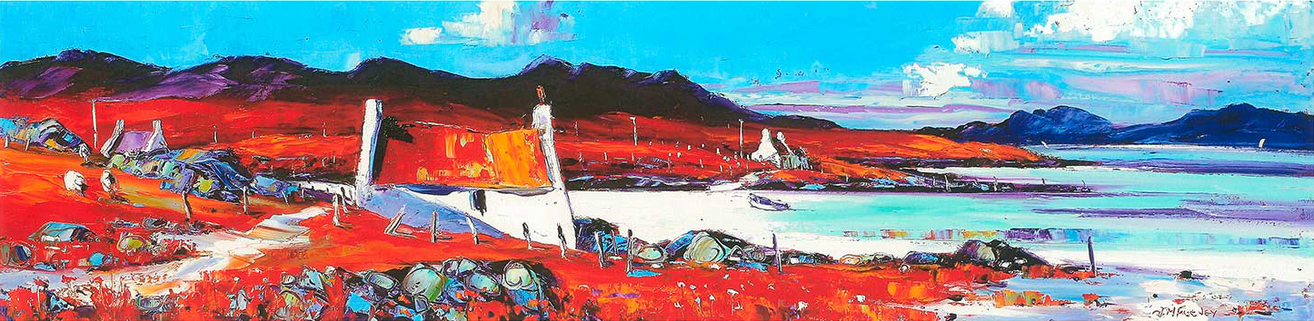 Shore Cottages Isle of Barra Limited Edition Framed Fine Art Giclée Print by Jean Feeney