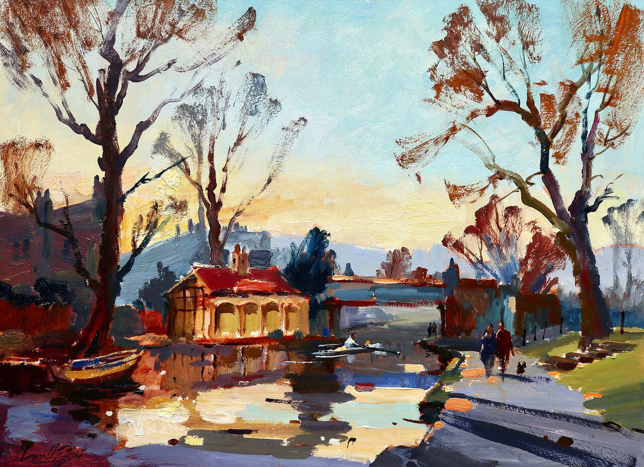 Joseph Maxwell Stuart was born in 1956. He studied drawing at the Ruskin School in Oxford then studied Fine Art at Edinburgh College of Art. Now based in the Borders, Joe finds an endless source of inspiration from the landscape in which he lives. Venice too has a natural attraction for him and with its lively colours and constant bustle provides a welcome contrast to Scotland. Joe paints in both oils and watercolours mostly ‘en plein air’ where he delights in the challenge of working directly from nature.