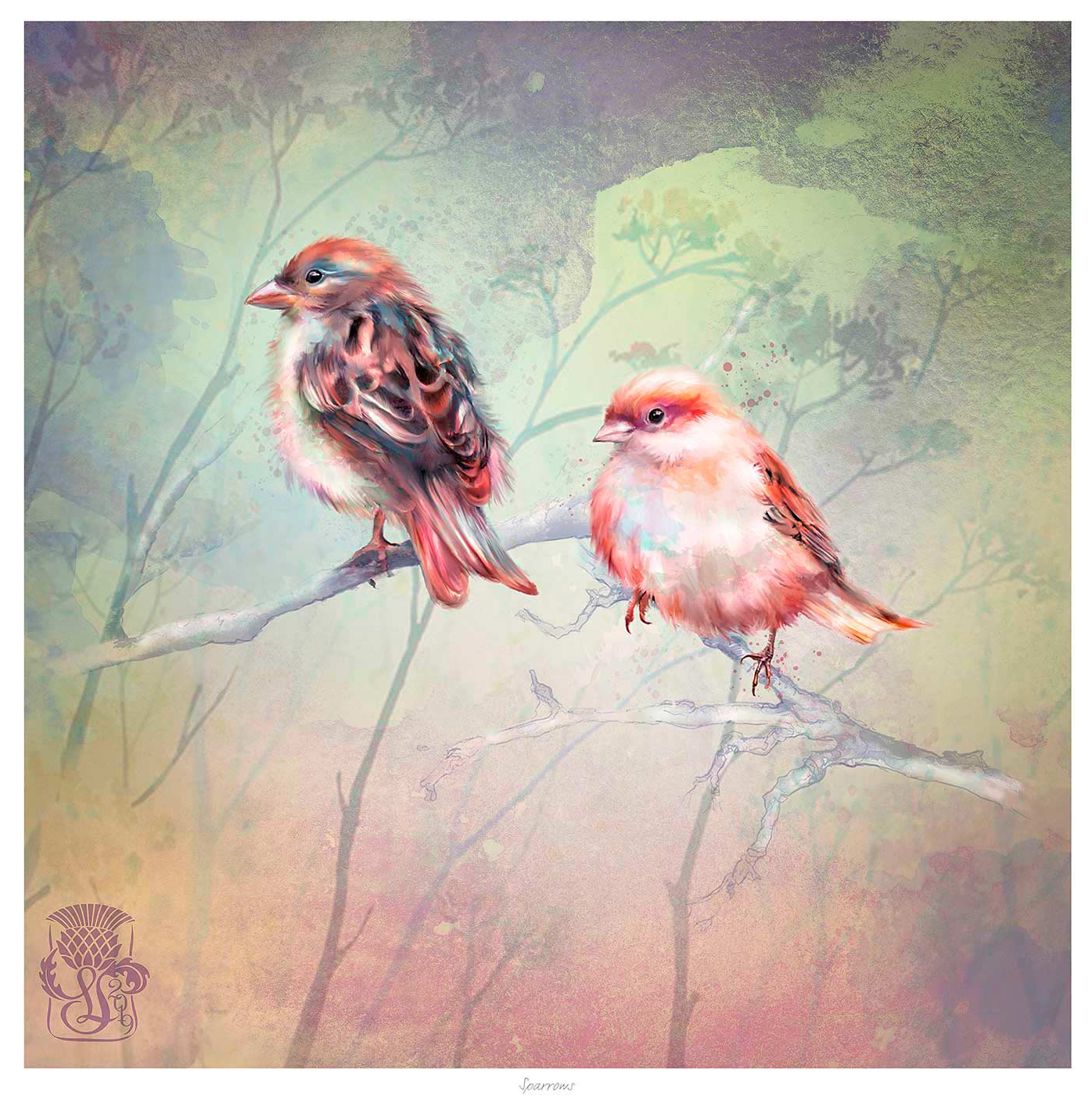 Sparrows Framed Fine Art Giclée Print by Lee Scammacca