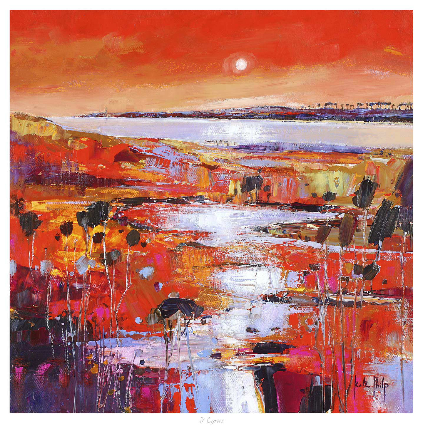 Kate Philp was born in Africa, brought up in Scotland and currently lives in North Northumberland where contrasting stretches of sandy beaches and rugged cliffs feature in her work. She also enjoys the white sands and turquoise waters of the West Coast and Islands which inspired many paintings by Scottish colourist Bunty Cadell, who was in fact Kate’s grandmother’s cousin.