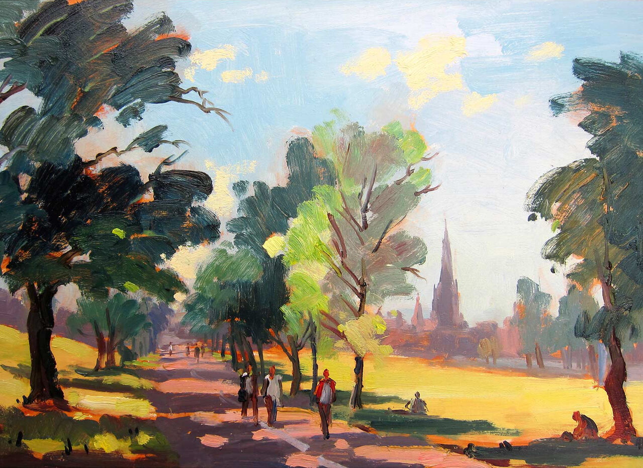 Strolling Through the Meadows,Edinburgh Framed Fine Art Giclée Print by Joseph Maxwell Stuart.