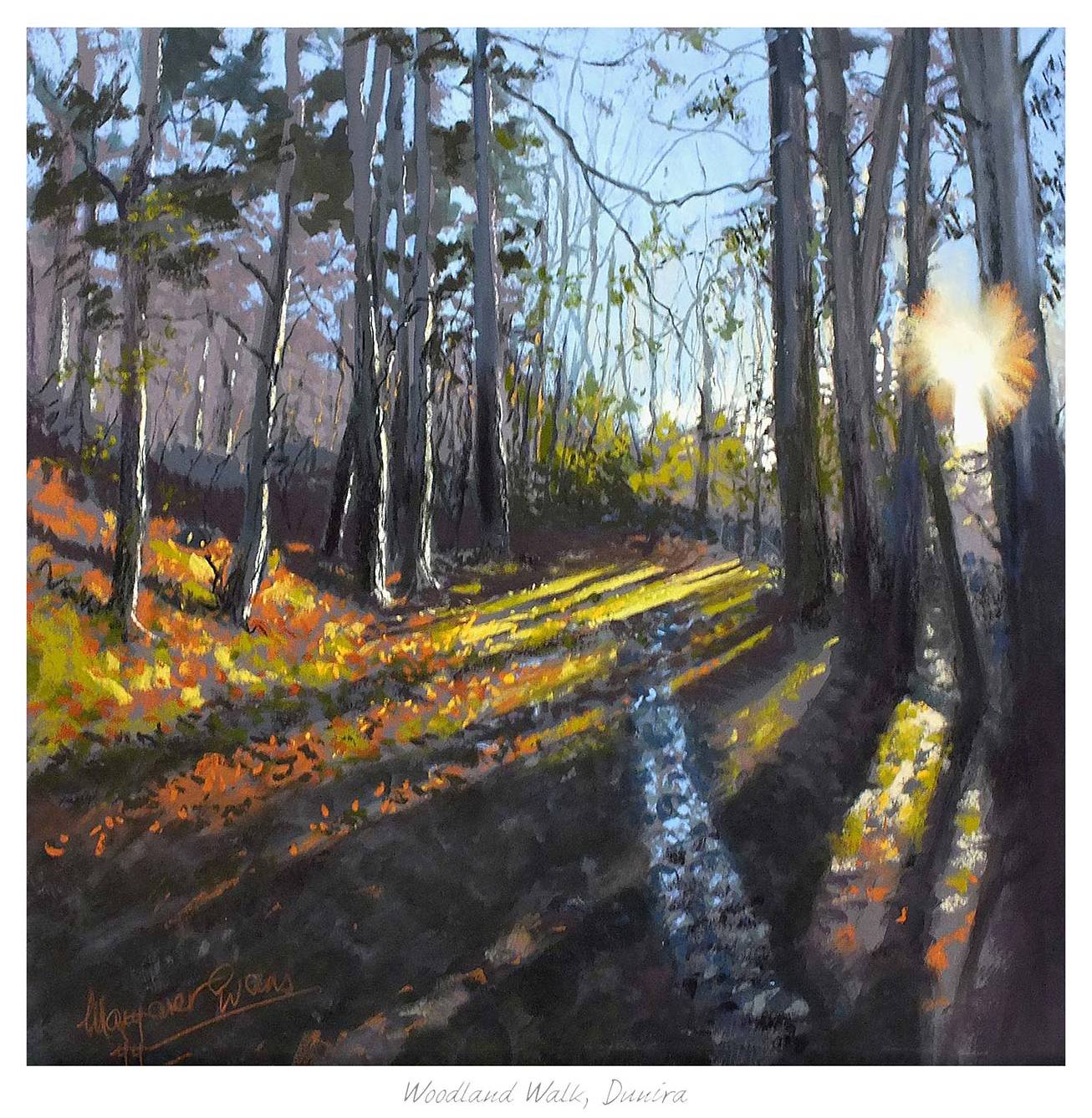 Woodland Walk, Dunira Framed Fine Art Giclée Print by Margaret Evans.