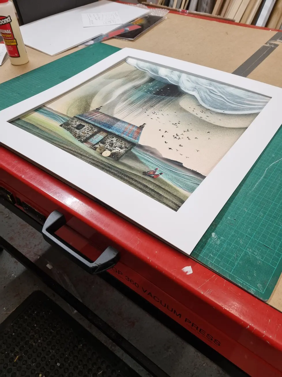 No detail is overlooked when it comes to framing Esther Cohen’s prints. Backing boards and glass are cut with utmost precision, adhering to the highest standards of craftsmanship. Each cut is executed with care, ensuring that the final presentation is nothing short of perfection.