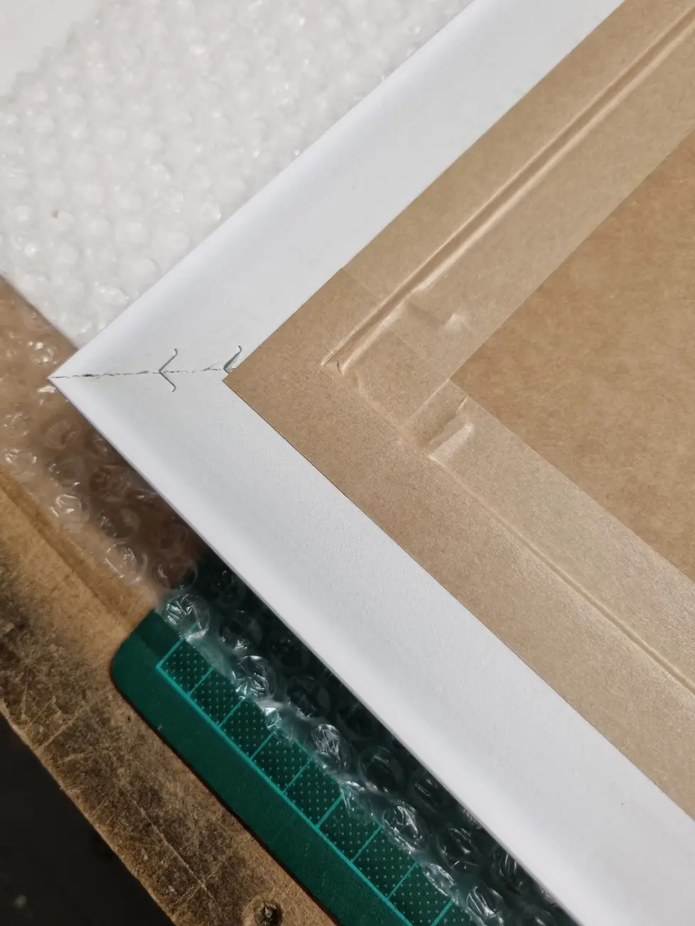 To ensure the longevity of the frame, the underpinning process is executed with precision. At First4frames Gallery, the under pinner is meticulously set up, and the appropriate wedges and glue are selected for optimal results. Each joint is secured with care, ensuring a sturdy frame that will stand the test of time, preserving the beauty of Esther Cohen’s artwork for years to come.